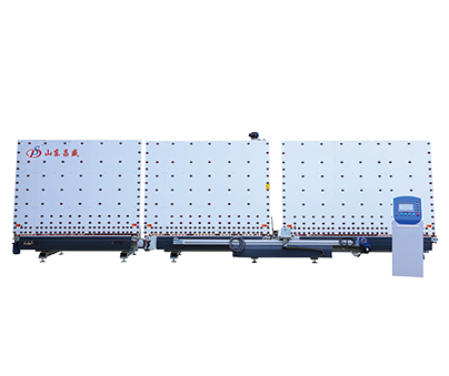 玻璃合片時平壓機前后箱機械手杠桿式托料,(機械式硬限位+活動板吸盤吸附)確保自動合片時玻璃永不錯位。清洗箱 風干箱 風刀等全不銹鋼制作,外形美觀大方,永不銹蝕。